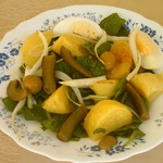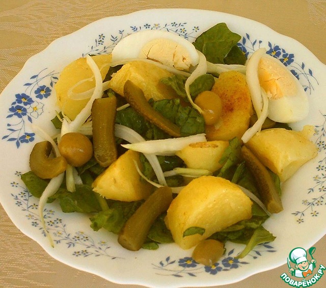 Область Тосканы славится своими виноградниками и сельскохозяйственными угодьями. И пища здесь по-деревенски сытная, вкусная и незатейливая. Таков и этот салат с запеченным картофелем, яйцом, сладким луком, маслинами, листьями молодого щавеля и маринованными огурчиками. Заправка - из оливкового масла с зерновой горчицей. Настоящий мужской салат.