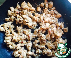 Огонь на плите - средний. На сливочном масле обжариваем курицу минуты 2, не больше.