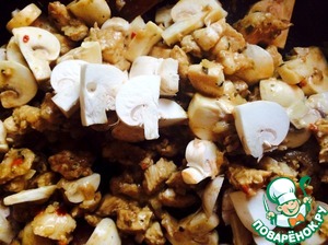 Добавляем грибы, обжариваем еще минуту.