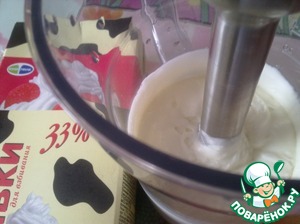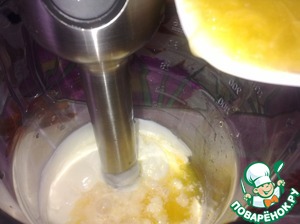 К взбитым сливкам с сахаром постепенно добавить апельсиновый сок.