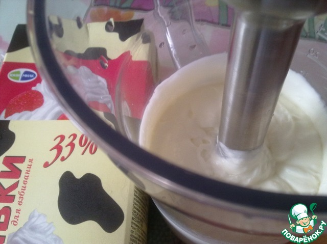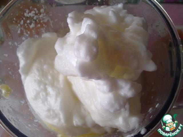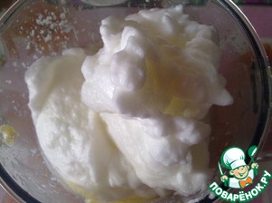 К полученной массе добавить взбитые в густую пену белки, аккуратно перемешать и десерт готов.
