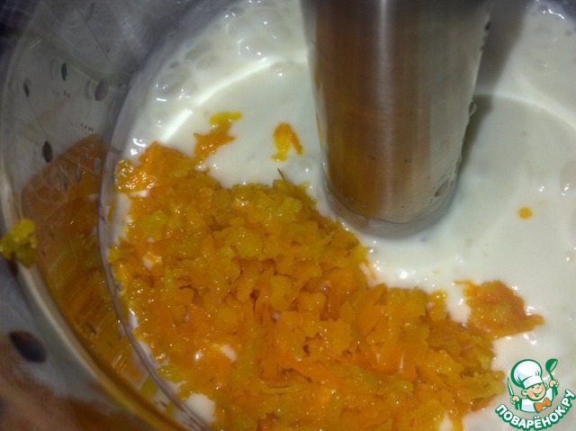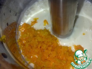 На мелкой тёрке натереть цедру апельсина, не прекращая процесс взбивания добавить к сливкам и апельсиновому соку.