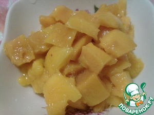 Кусочки манго смешать с апельсиновым соком.
