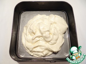 Тесто выкладываю в квадратную разъемную форму размером 28*28 см, смазанную растительным маслом.