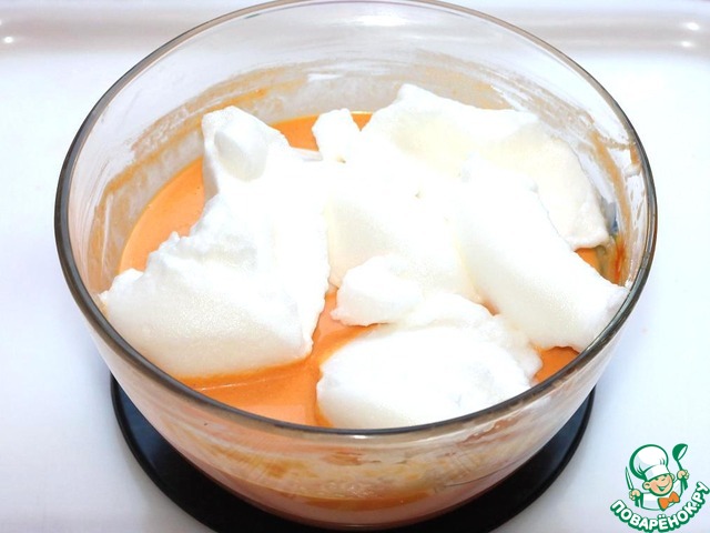 Яичные белки взбейте с щепоткой соли до устойчивых пиков