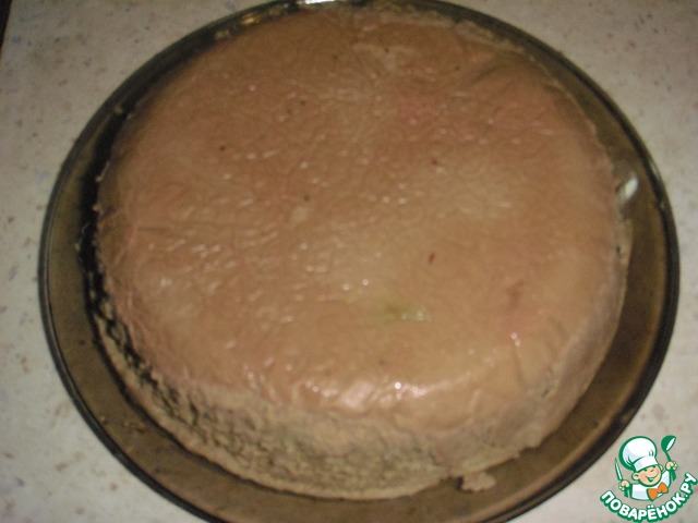 В глубокий противень наливаем воды и нагреваем духовку до 175 градусов. Отправляем туда нашу печеночную массу на 1 час. -