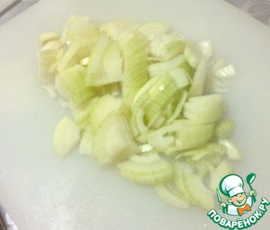 Когда горох разварился (газ не выключаем), лук режем четверть-кольцами.