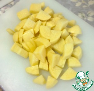Картофель режем крупными кубиками, кладем в кастрюлю и варим всё до готовности картофеля.
