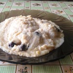 Отправим банан к манке вместе с молоком, мускатным орехом, шафраном, солью, изюмом и кардамоном.