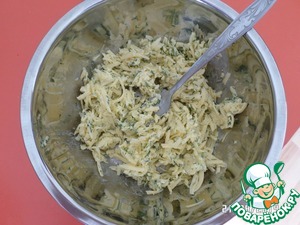 Сыр натереть на крупной терке, зелень измельчить ножом. Сыр смешать с зеленью и сливочным маслом, добавить соль.