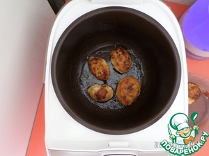 В чашу мультиварки залить масло, выложить котлеты. Выбрать программу "Жарка" и установить время приготовления 30 минут. Готовить до окончания программы. За 10 минут до завершения приготовления котлеты перевернуть.