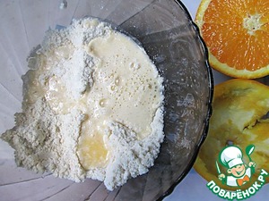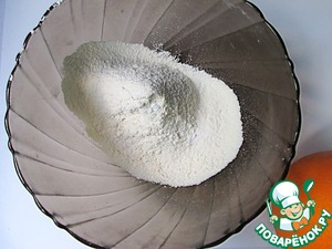 Муку просеиваем с содой, отжимаем из апельсина сок.