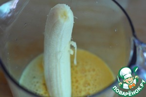 Банан добавить в стакан к свежевыжатому соку и взбить блендером. Очень удобный стакан Scarlett SL-JE51S01 в нём слёгкостью можно работать погружным блендером.