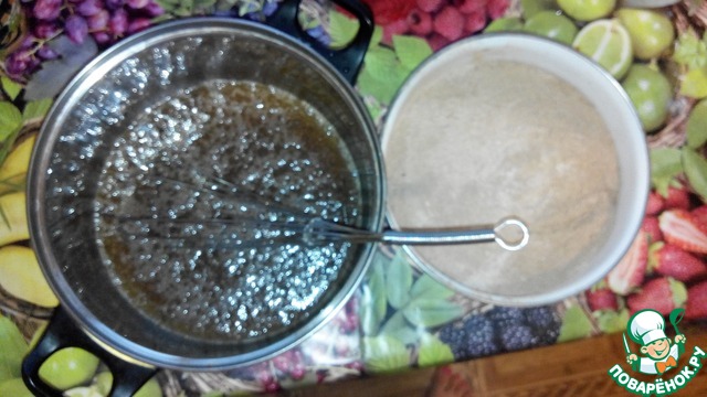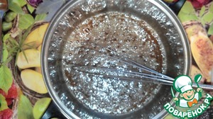 Отдельно взбиваем сахар, масло, воду, кофе и ложку вина