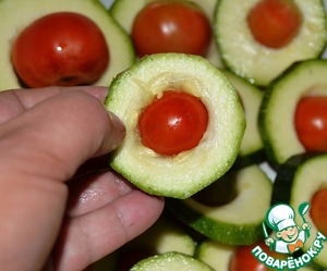 Кабачки режем кольцами и вырезаем семена - получается кольцо.
