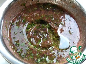 Добавить мятный сироп, соль, смесь перцев и растительное масло. Перемешать и дать настояться 20-25 минут.