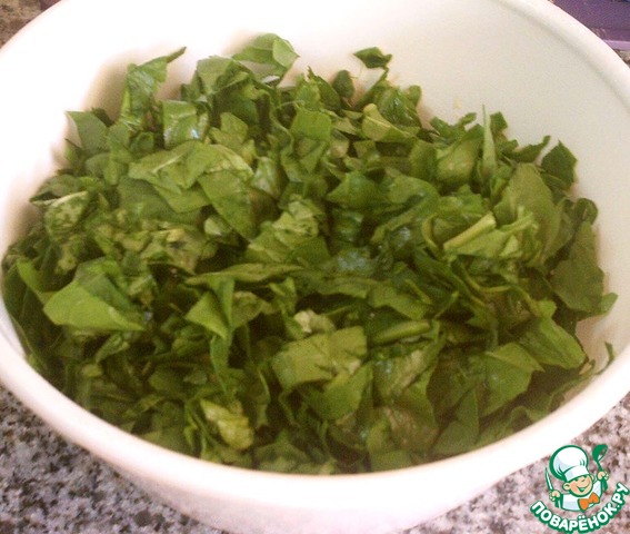 Шпинат помыть и нарезать.