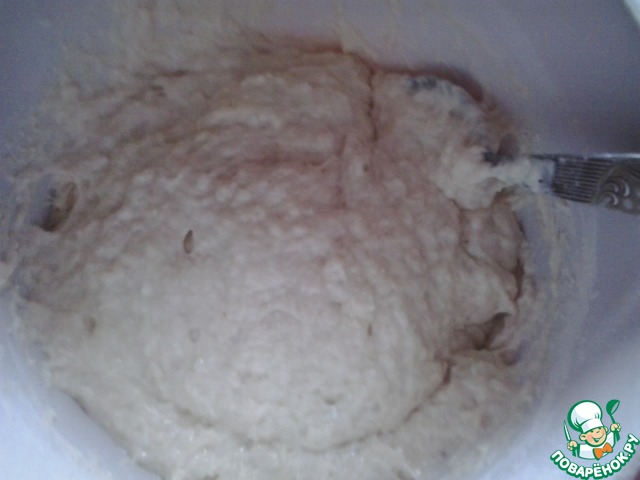 На фото - тесто после вымешивания, но я рано его сфотографировала, после того, как тесто станет таким, нужно вымесить ещё минуты 3.