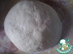 • Затем тесто нужно выложить на посыпанный мукой стол и начать вымешивать руками, тоже посыпанными мукой. Если вы сможете продержаться 10-15 минут, это будет отлично. Затем накрыть полотенцем и оставить в тёплом месте на часок.