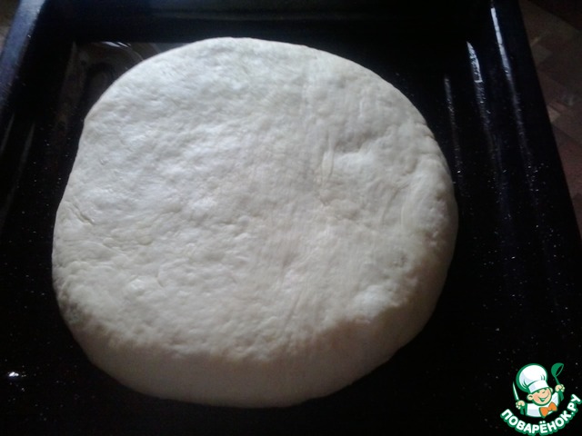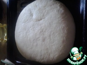 • Тесто увеличилось примерно в 2 раза. Теперь нужно поставить его в предварительно разогретую до 220 градусов духовку и выпекать около 25 минут.