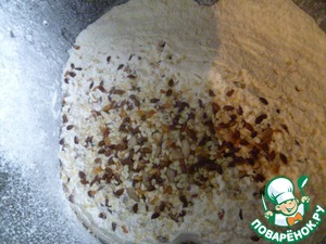 Дальше просеянную пшеничную муку. И 1 столовую ложку зерновой смеси.