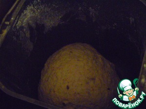 Здесь фото темное ( хлебопечка стоит в углу), но колобок теста видно.