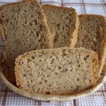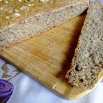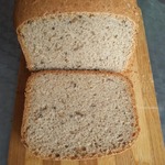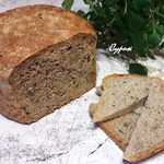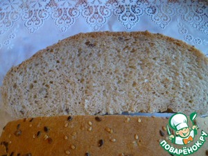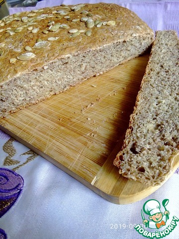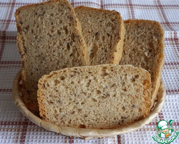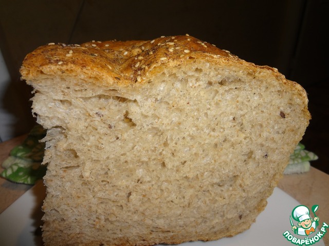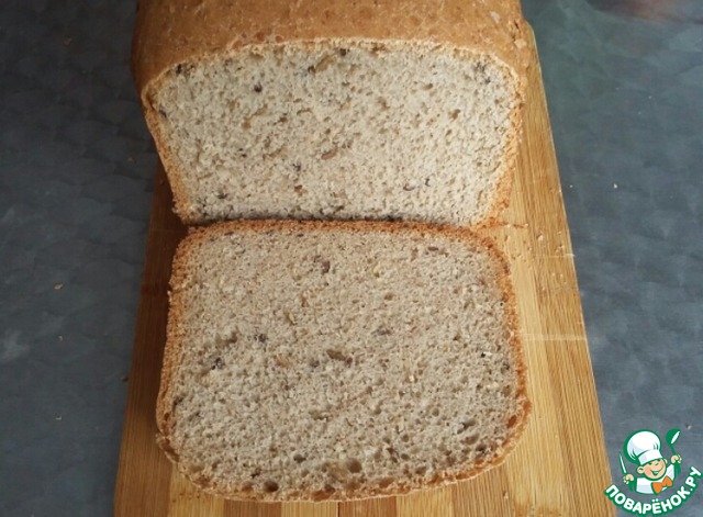 Этот хлеб я придумала вчера... С любовью к бабушке. Она болеет и ей нужен полезный хлеб, не сильно сладкий... Сейчас у нас тяжелое время, нет пенсий и ей не за что уже купить в магазине ее любимый отрубной хлебушек... Поэтому этот хлеб я придумала и испекла для нее. Когда же я его разрезала, чтобы посмотреть как он пропекся, дочка попросила кусочек этого хлебушка. Он ей так понравился, что для доченьки я теперь тоже буду печь такой хлебушек..