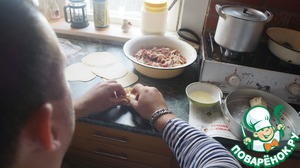 Самое инетресное это подготовка мяса для начинки, специально не использую слово фарш, начинка исключительно хэнд мэйд, рубленное мясо и лук.