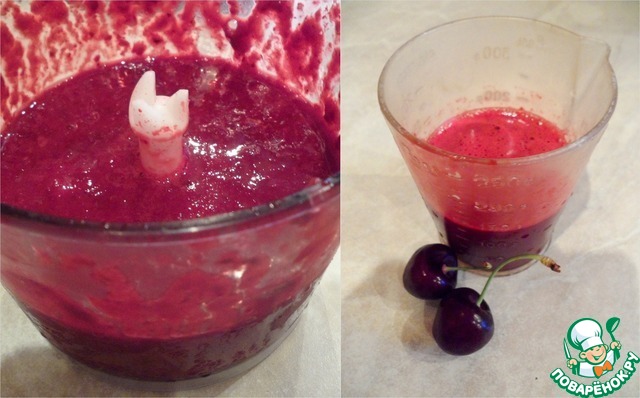 Выжать при помощи миксера и марли 30 мл вишневого сока.