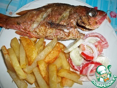 Еще один камерунский рецепт. Такую рыбку вы можете здесь встретить вечером практически на каждом углу. Часто уставшие после работы мужчины перед тем, как вернуться домой к стряпне жены)), пропускают рюмочку в кругу друзей в сопровождении этого блюда. Традиционно рыба готовится на мангале, но я запекаю в духовке (можно просто обжарить на сковороде!). Очень сочно, ароматно и красиво! А главное, натурально! Только рыба и зелень, Вы можете убедиться, что и без сыра и майонеза ваша рыбка удастся на славу!