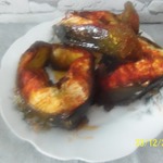 Подавать рыбу горячей или холодной, как самостоятельное блюдо или с гарниром. Я подавала с картофелем и простым салатом из огурца и помидор.