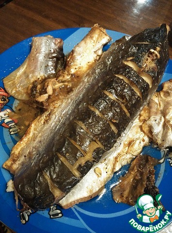 Сделать несколько поперечных надрезов. Рыбу слегка посыпать солью (совсем немного, так как в маринаде уже есть соль).