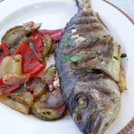 Ставлю противень на верх, поближе к грилю. Через 7-10 мин. достаем противень и быстро смазываем рыбу маринадом. Отправляем в духовку. Эта процедура убережет рыбу от подсыхания и позволит ей впитать все ароматы.