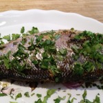 Соус подают отдельно, желающие могут полить им рыбу или просто обмакивать в него кусочки рыбы. -