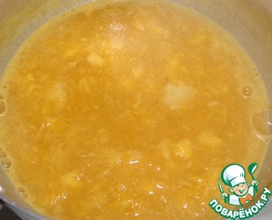• Сок выливаем в кастрюльку и ставим на медленный огонь. Варим 2-3 минуты.