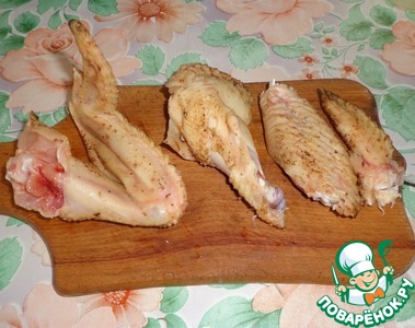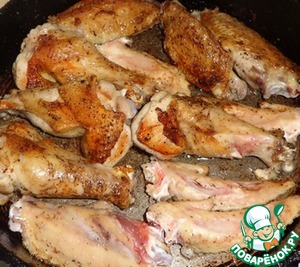 • Крылышки обжариваем на растительном масле до золотистого цвета.