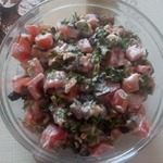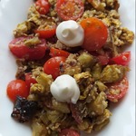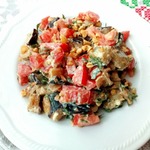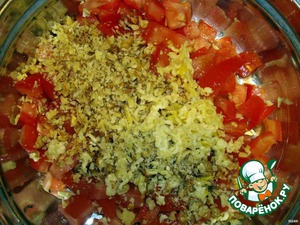 Пока жарятся синенькие, нарезаем кубиками помидоры