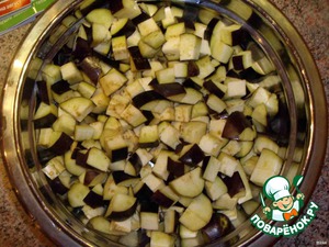 Баклажаны моем, нарезаем кубиками 1х1 см