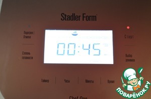 Включаем режим "Выпечка" 45 минут, все 45 минут нам не понадобятся, за 20 минут нам необходимо будет прервать программу, для украшения хлеба.