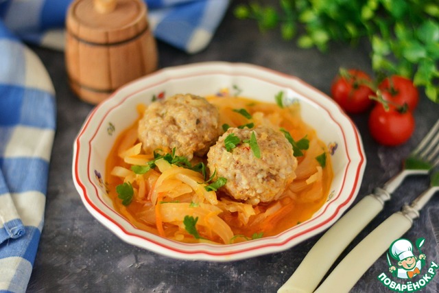 Рецепт «Тушеная капуста с фрикадельками в мультиварке»:
