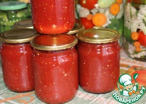 если помидоры хорошие ("мясистые" ), то в процессе шестичасовой(!!!) варки они обязательно загустеют. Тут должна быть проблема не в том, что жидко получается, а совсем наоборот...))) Хороший рецептик! Спасибо!