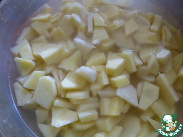 Когда картофель сварится, вынуть тыкву и немного картофеля, потолочь.