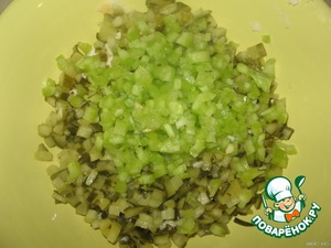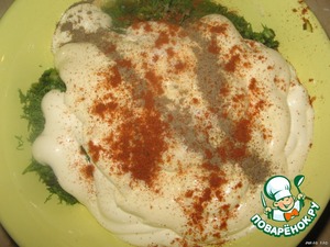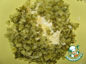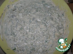 Нарезаем зелень. Добавляем майонез. Я шаг с зеленью пропустила, к сожалению.