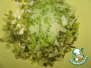 Готовим соус: Нарезаем меленько сваренное яичко.