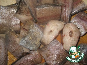 Разделываем рыбку. Режем её на кусочки. Солим, перчим.