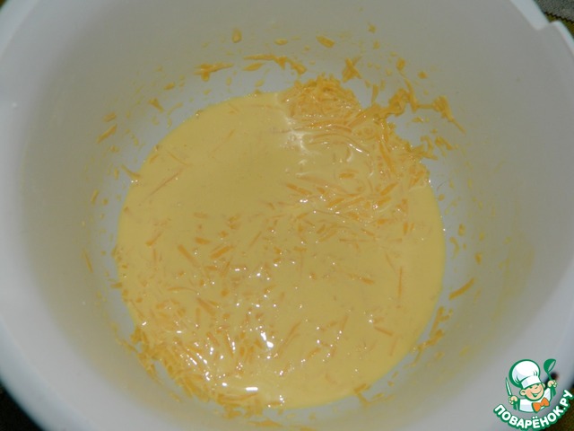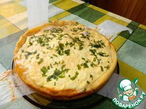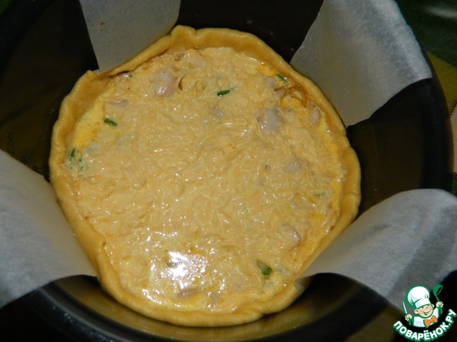 • Тесто выложить в чашу мультиварки, формируя бортики. Выложить начинку.