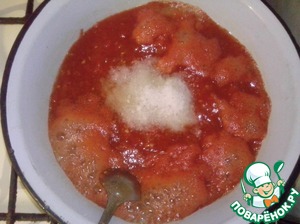 Сок свежевыжатый из помидор наливаем в кастрюльку и при закмпании добавляем соль.