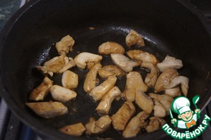 Затем извлечь мясо из маринада, обмакнуть бумажной салфеткой, нарезать продолговатыми кусочками и быстро обжарить до готовности на сильном огне. Переложить со сковороды в мисочку.