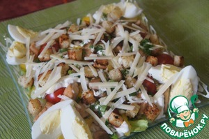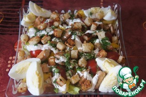 Это такой комплимент салату "Цезарь", в общем по мотивам... Легкий, летний салатик.