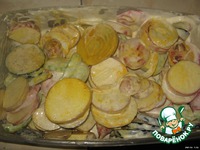 Нарезаем овощи тонкими колечками. Картофель я не чистила, только очень хорошо помыла. |
